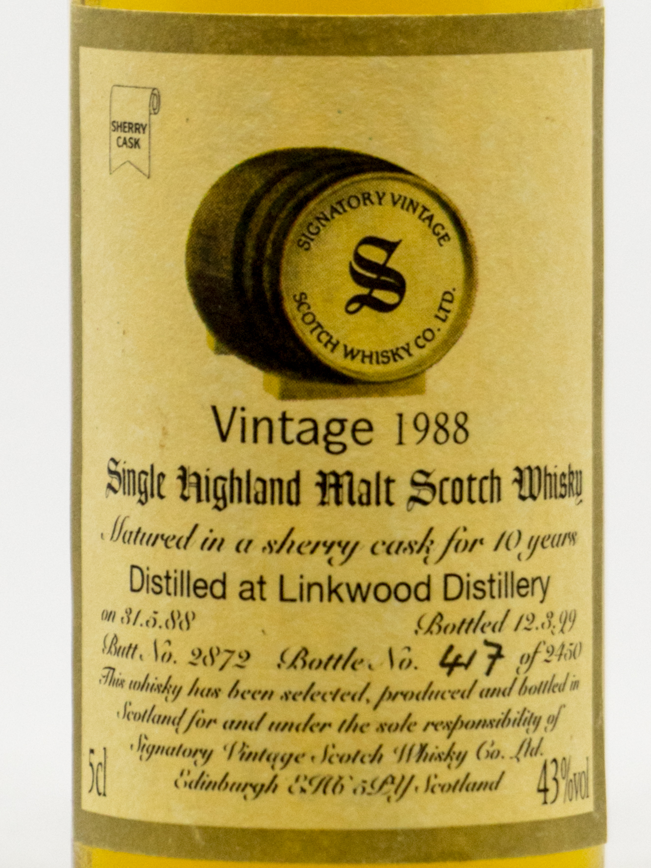 Sehr gut durch die Jahre gekommene Jahrgangs-Miniatur mit herzhafter Farbe, sehr gutem Füllstand und auf dem etwas verspielten Etikett gut ersichtlichen Angaben zu Jahrgang, Herkunft, Lagerung, Alter und Abfüllung.